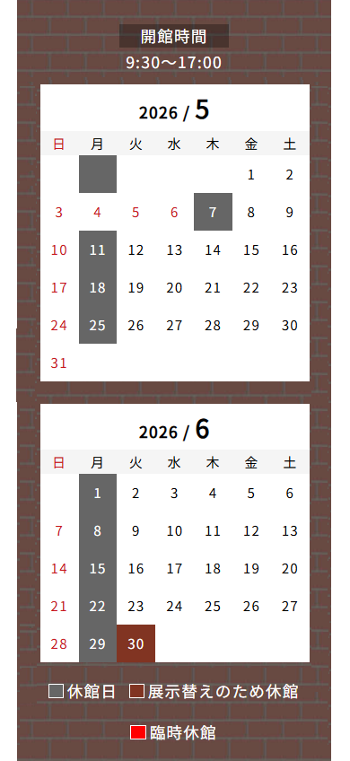 | 日 | 月 | 火 | 水 | 木 | 金 | 土 |