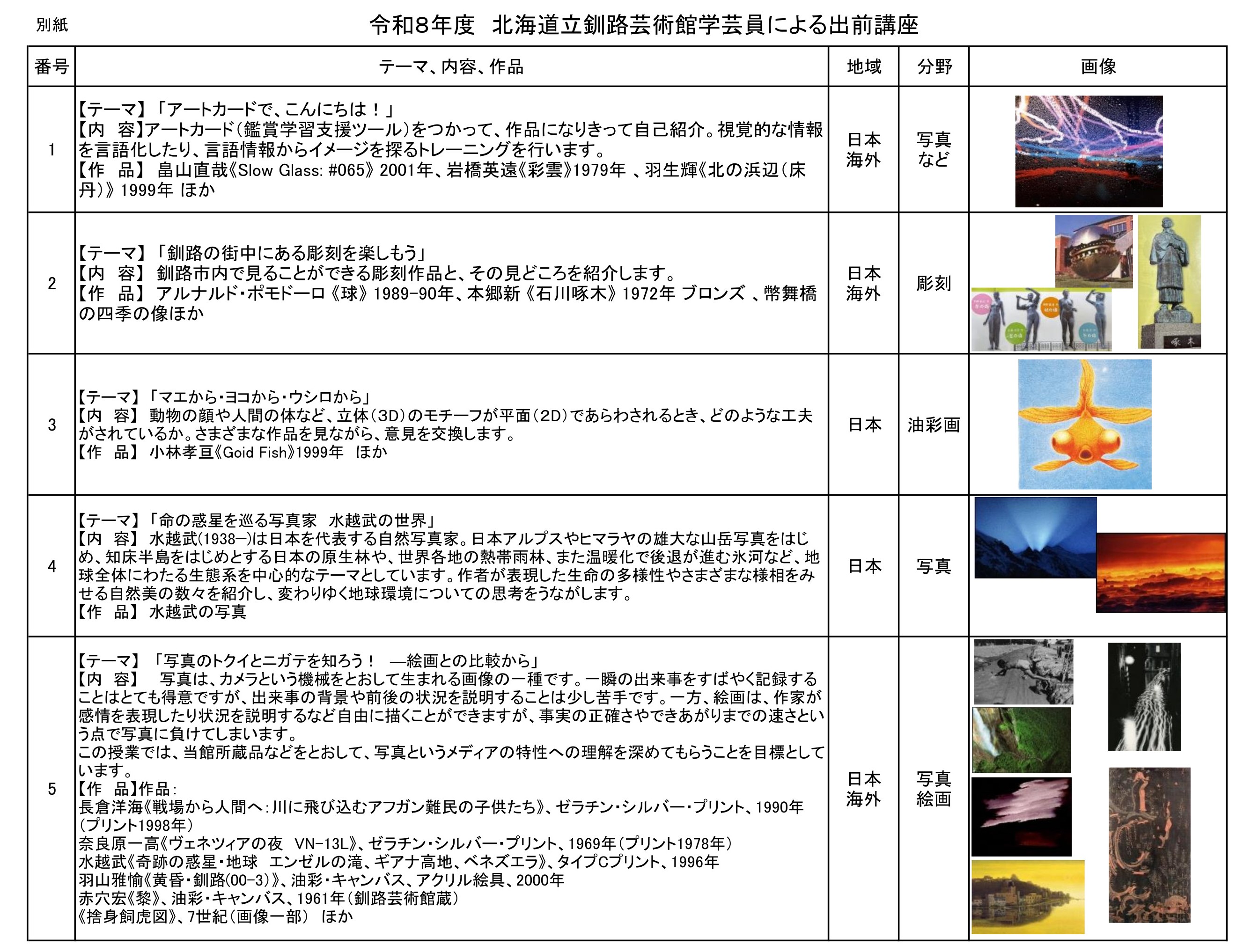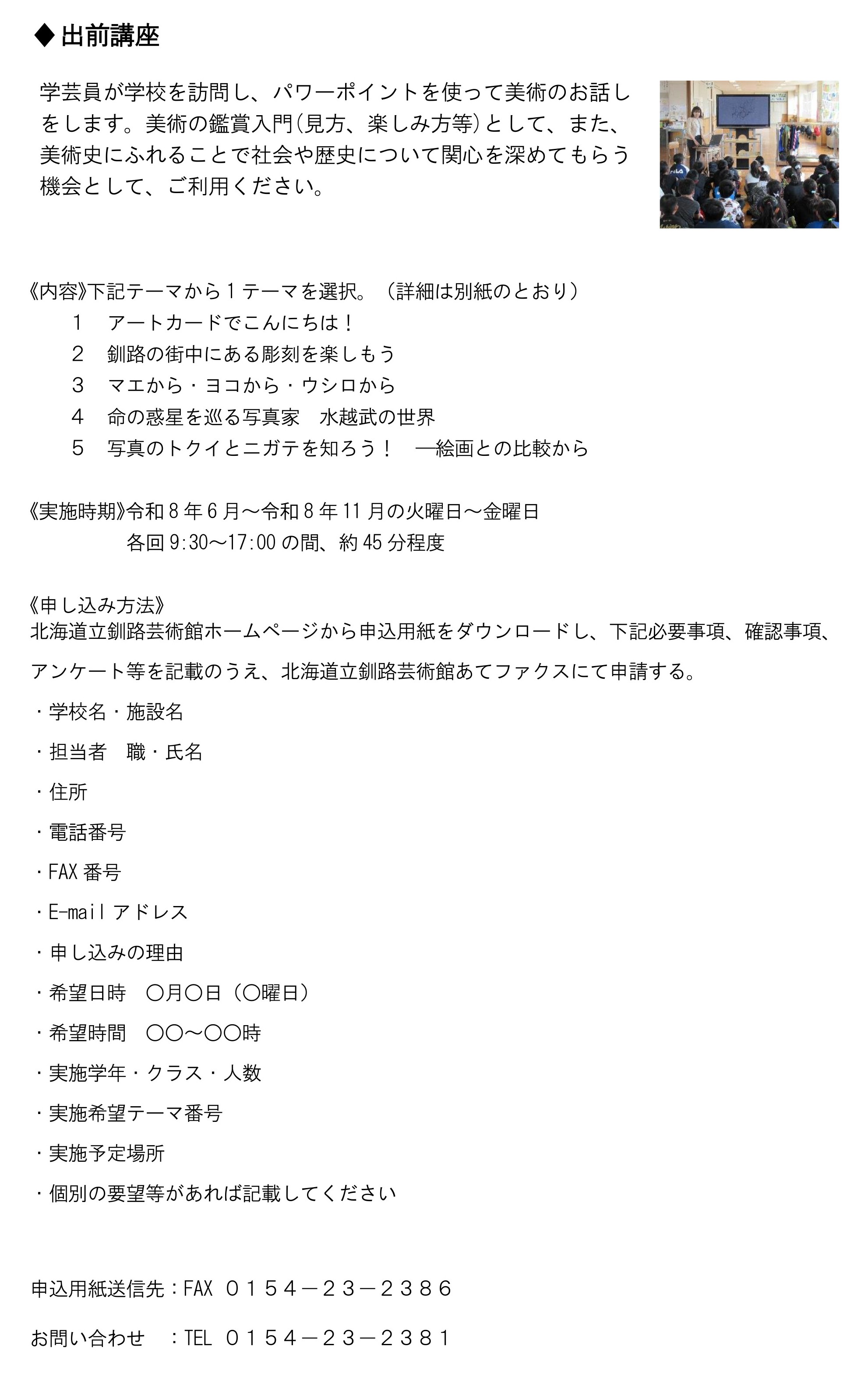 釧路芸術館では、先生方に美術館活動を知っていただき、日常の教育活動にご活用いただくため、